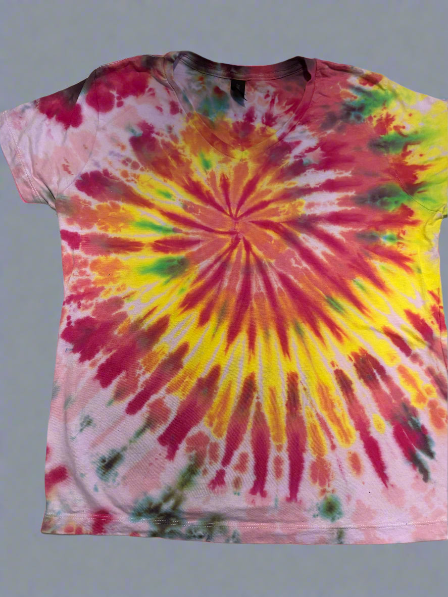 Hand-Dyed Women’s V-Neck Tie-Dye T-Shirt – Large Size – Dyed in Ottawa, Canada