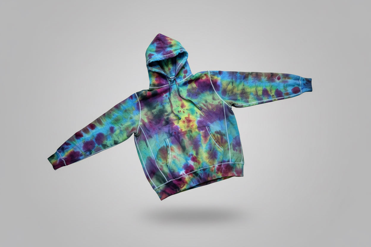 Each hoodie is hand-dyed in Ottawa using professional fibre-reactive dyes, ensuring long-lasting colour and a one-of-a-kind finish. No two are ever the same.