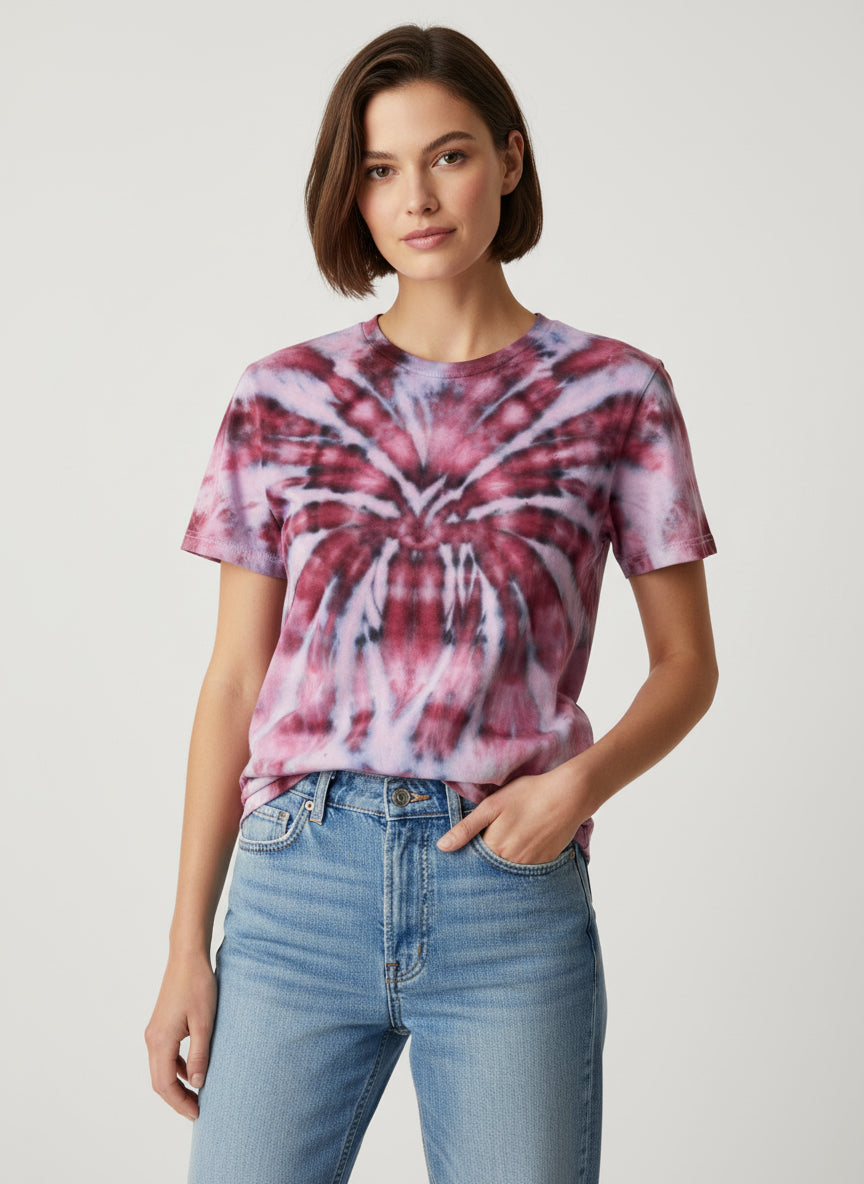 Hand-tied and hand-dyed on a premium ringspun Bella+Canvas 3001, it’s lightweight, incredibly soft, and made for everyday wear. The mirrored burst pattern is subtle and painterly, giving the whole piece a grounded, earthy energy.