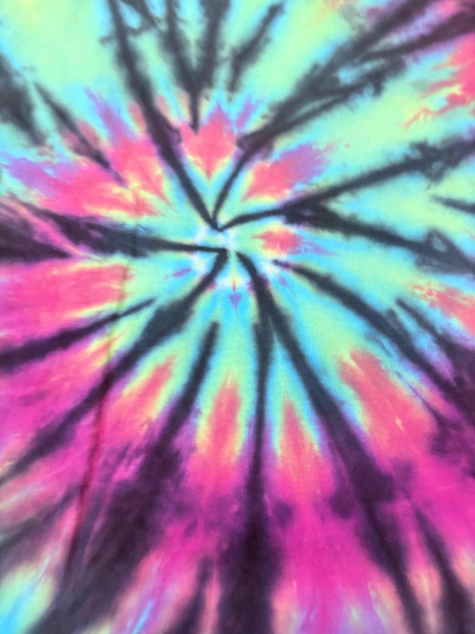 - Radiant firework spiral pattern in turquoise, magenta, lime, and black