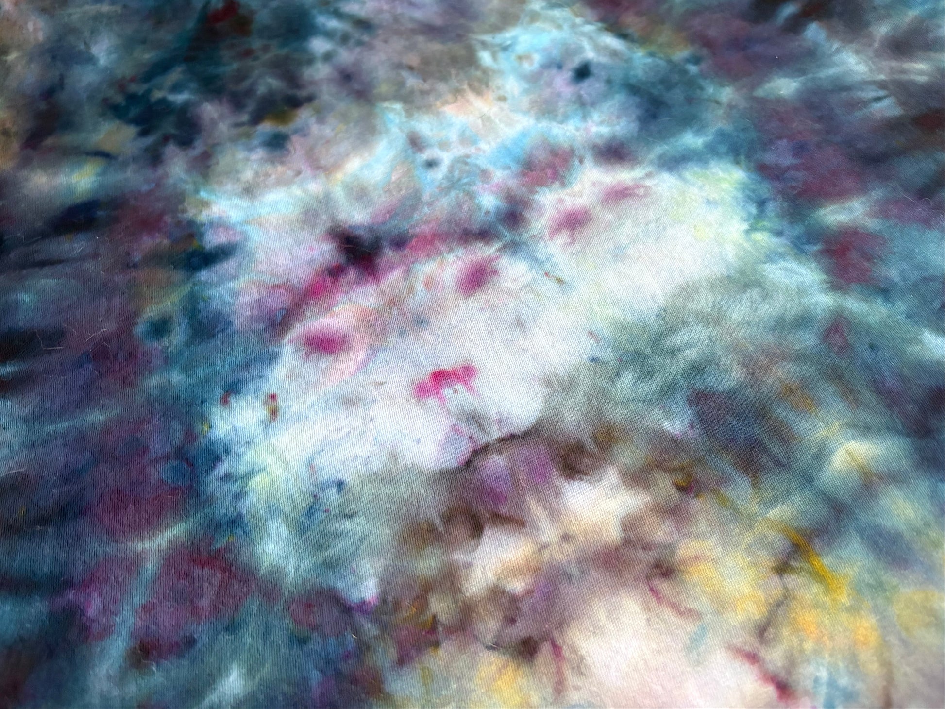 This shirt is the only one like it on Earth. Hand-dyed in my Ottawa studio using vibrant, professional-grade fiber-reactive dyes, this design can ever be replicated. The colors, folds, and flow of each piece emerge organically, making this shirt a wearable original.