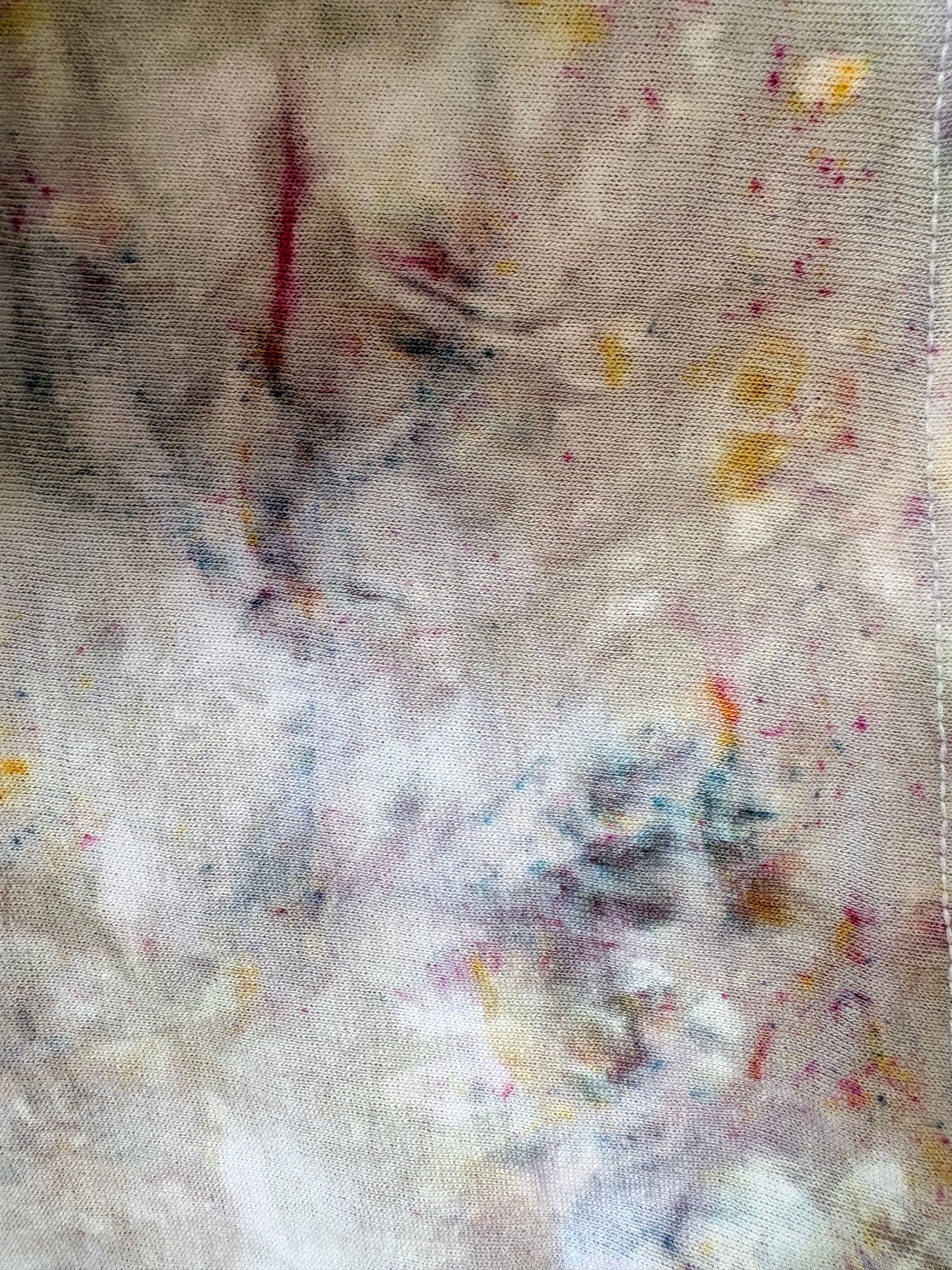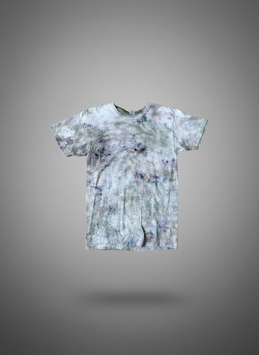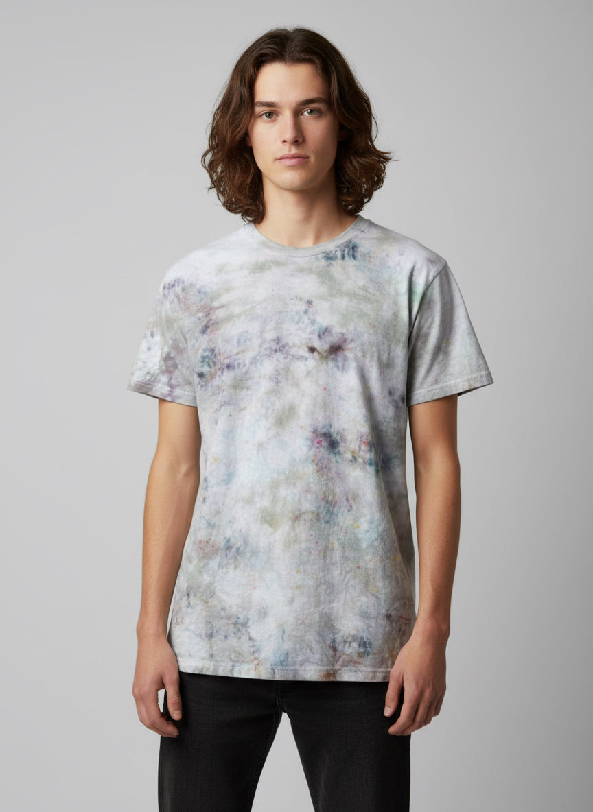 This M&O 4800 tee has been hand-dyed in Ottawa, giving it a soft, lived-in soul. Earthy greens melt into lavender murmurings and charcoal whispers, creating a subtle speckled landscape that wears like calm.