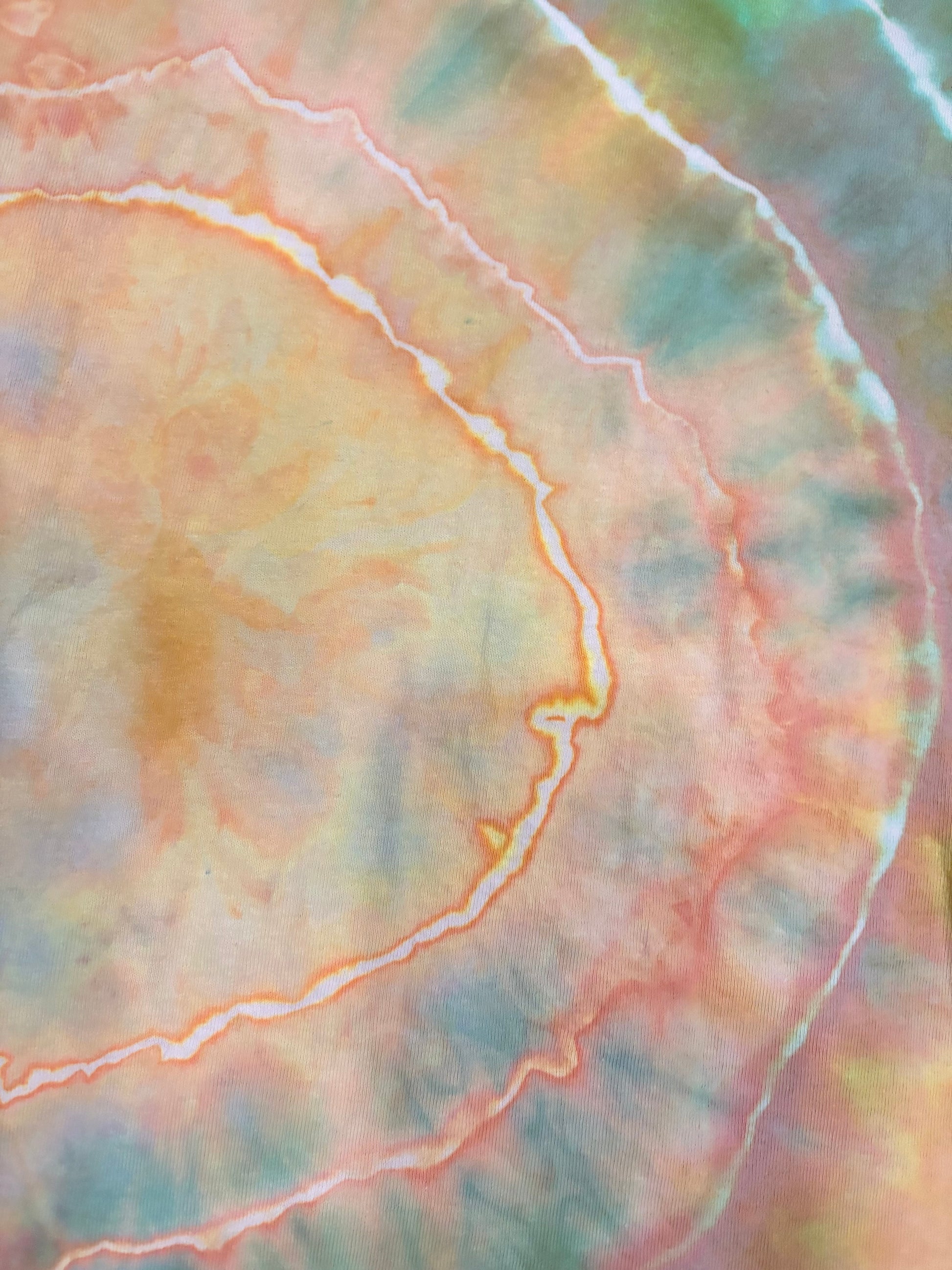 Breathe deep and drift into the calm of the forest with Mosslight — a one-of-a-kind hand-dyed tee that captures the quiet glow of earth after rain. Shades of moss, clay, and turquoise spiral together like the living heart of a geode, radiating warmth and renewal.
