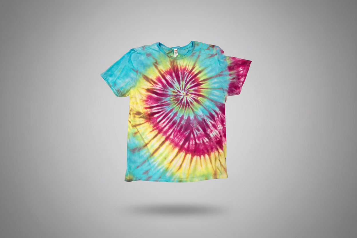 Sunrift Spiral is a one-of-a-kind, hand-dyed tie-dye tee where warm magenta and golden yellow radiate through cool sky-blue tones. A classic spiral anchors the centre, while soft colour transitions and subtle bleed lines give the piece a relaxed, sun-washed feel — like late afternoon light drifting across water.